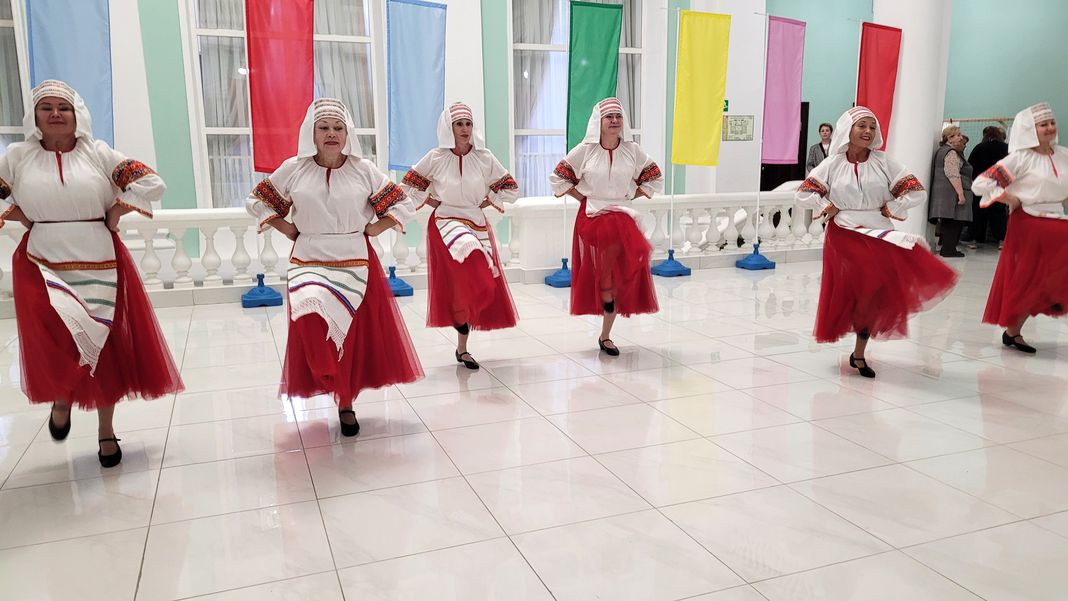 Представительницы старшего поколения лесничан, которые занимаются танцевальной терапией в стенах «Современника» в клубе по возрождению народных традиций «Словинка», пропагандируют дружбу наших братских славянских народов. Коллектив продолжил марафон и исполнил «Белорусский танец» и «Уральскую кадриль».